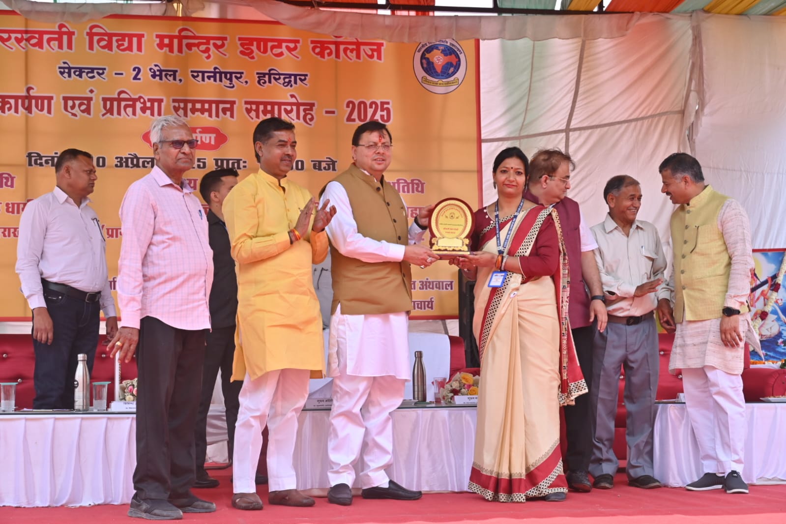 मुख्यमंत्री पुष्कर सिंह धामी ने गुरुवार को सरस्वती विद्या मंदिर इंटर कॉलेज, हरिद्वार में आयोजित प्रतिभा सम्मान समारोह-2025 कार्यक्रम में प्रतिभाग कर नवनिर्मित भवन व स्मार्ट रूम का लोकापर्ण किया। उन्होंने प्रतिभावान विद्यार्थियों एवं शिक्षकों को सम्मानित कर उनके कार्यों की सराहना की।