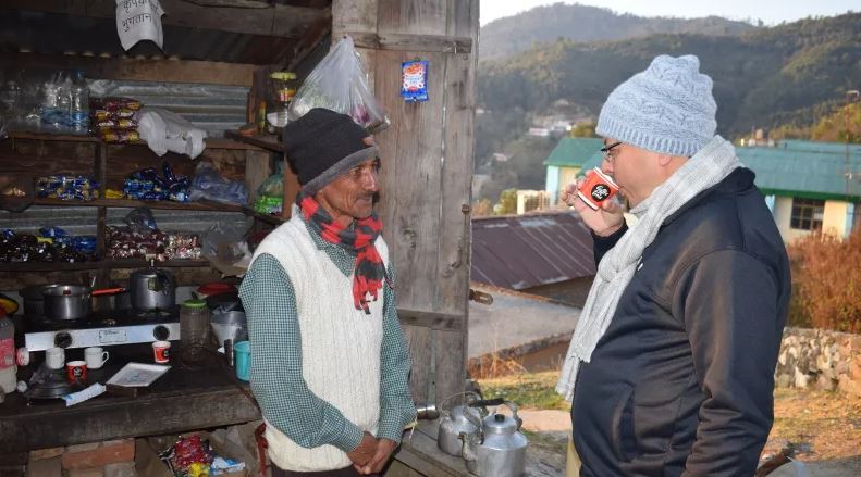 सीएम को अपने बीच पाकर उत्साहित लोगों ने विभिन्न विषयों पर सीएम धामी से वार्ता की। बता दें कि मुख्यमंत्री पुष्कर सिंह धामी चंपावत भ्रमण के दौरान शुक्रवार प्रातः सैर निकल सर्किट हाउस से होते हुए ब्लॉक रोड स्थित नित्यानंद जोशी की चाय की दुकान में पहुंचे और सबसे पहले सूर्य नमस्कार किया फिर चाय की चुस्की ली। उन्होंने नित्यानंद जोशी और अन्य लोगों से बात करते हुए उनका हाल चाल जाना। साथ ही सरकारी योजनाओं, कार्यक्रमों और विकास कार्यों पर चर्चा की। इस दौरान वहा बच्चें रियांश से मुख्यमंत्री ने बातें की और अपना आशीर्वाद दिया।