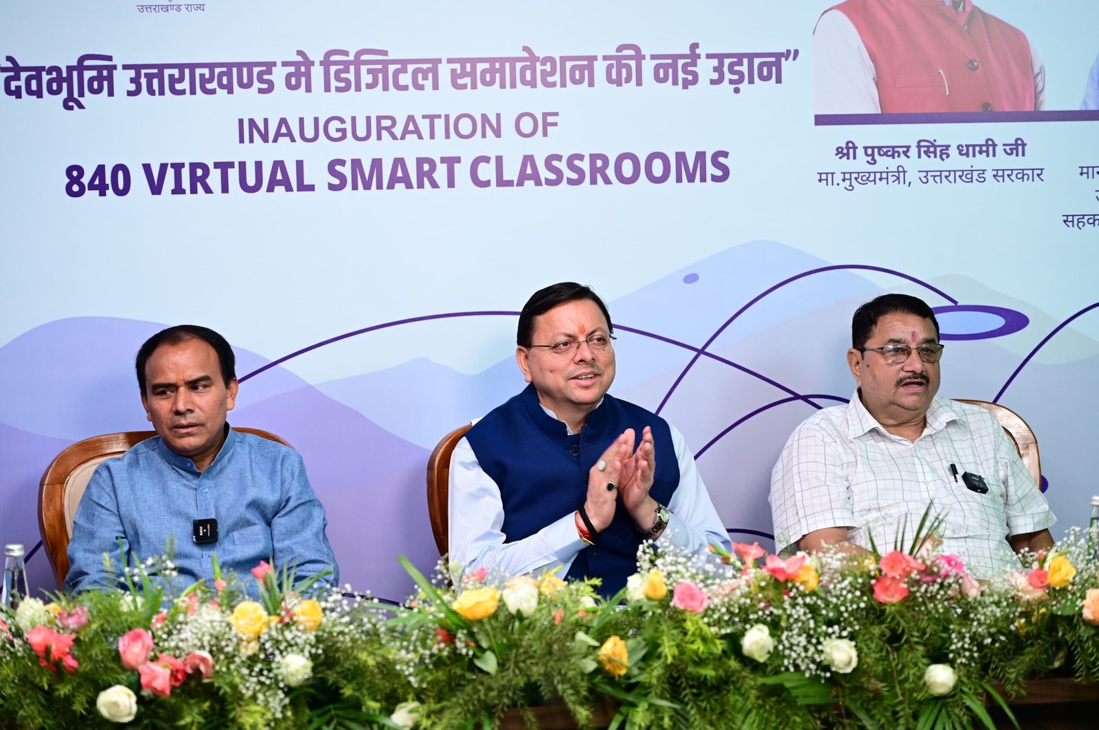 मुख्यमंत्री पुष्कर सिंह धामी ने शनिवार को राजीव गांधी नवोदय विद्यालय, ननूरखेड़ा (देहरादून) में आयोजित कार्यक्रम में प्रतिभाग करते हुए समग्र शिक्षा उत्तराखण्ड द्वारा विद्यालयी शिक्षा में आई.सी.टी. योजना के अंतर्गत 840 राजकीय विद्यालयों में हाइब्रिड मोड में संचालित वर्चुअल एवं स्मार्ट कक्षाओं के केन्द्रीयकृत स्टूडियो का शुभारंभ किया। इस अवसर पर मुख्यमंत्री ने विद्यार्थियों से वर्चुअल माध्यम से संवाद भी किया।