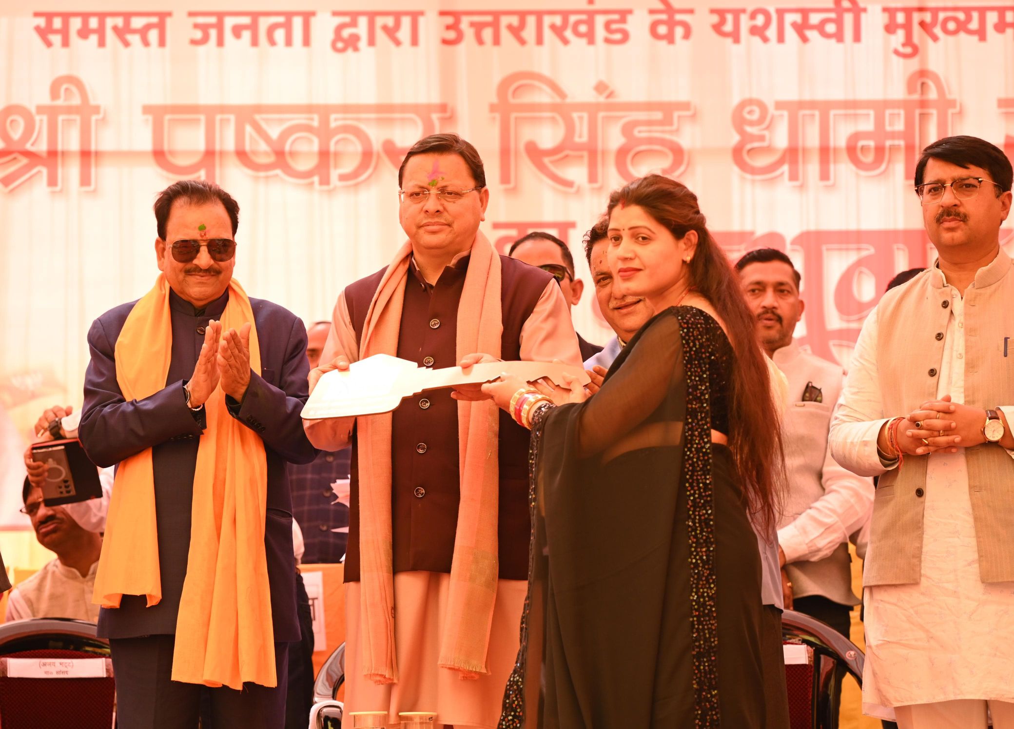 इस अवसर पर क्षेत्रीय सांसद अजय भट्ट व दीपक बाली ने मुख्यमंत्री का स्वागत किया व क्षेत्र के विकास के 11 सूत्रीय मांगे रखी। कार्यक्रम में मुख्यमंत्री पुष्कर सिंह धामी ने प्रधानमंत्री आवास योजना के लाभार्थियों को आवास की चाबी वितरित की व आवास के लाभार्थियों के खाते में डालने के लिए 1.95 करोड़ का चेक महापौर को दिया।